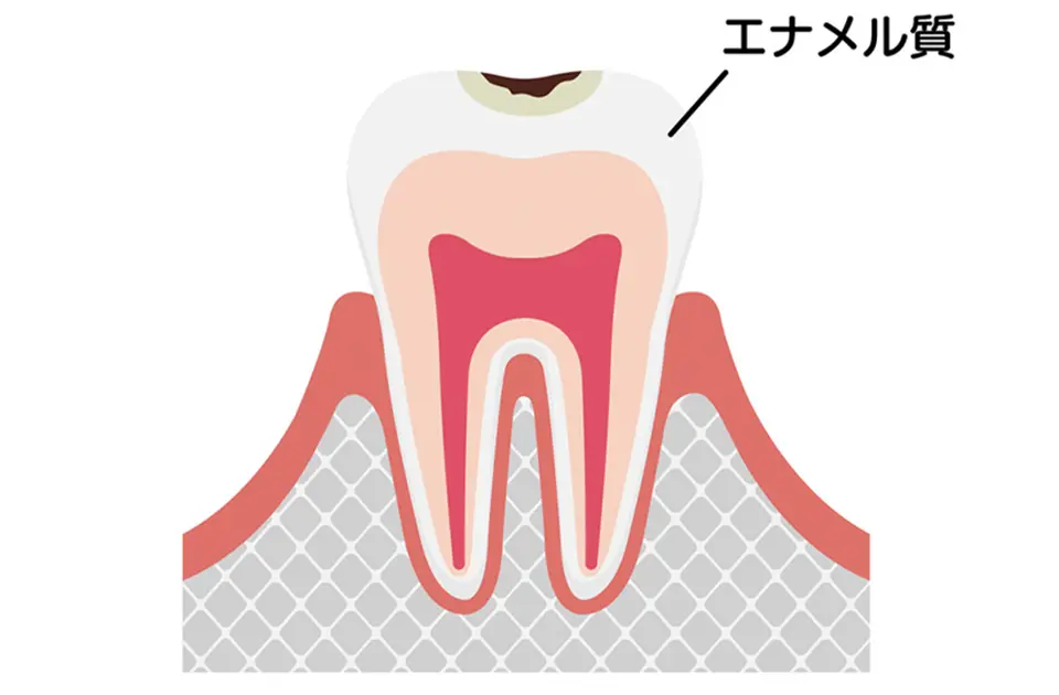 表面のエナメル質が溶け始めた状態。