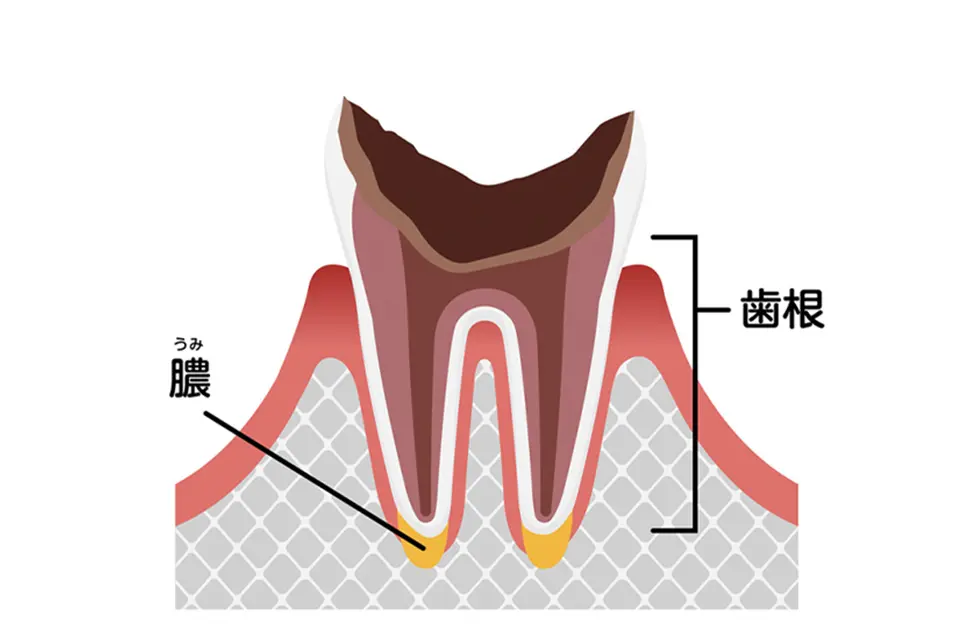 歯全体がむし歯に侵され歯根だけが残った状態。