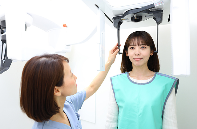 顎関節の位置関係や骨の変形や異常の有無、歯や噛み合わせの状態などを総合的に評価します。